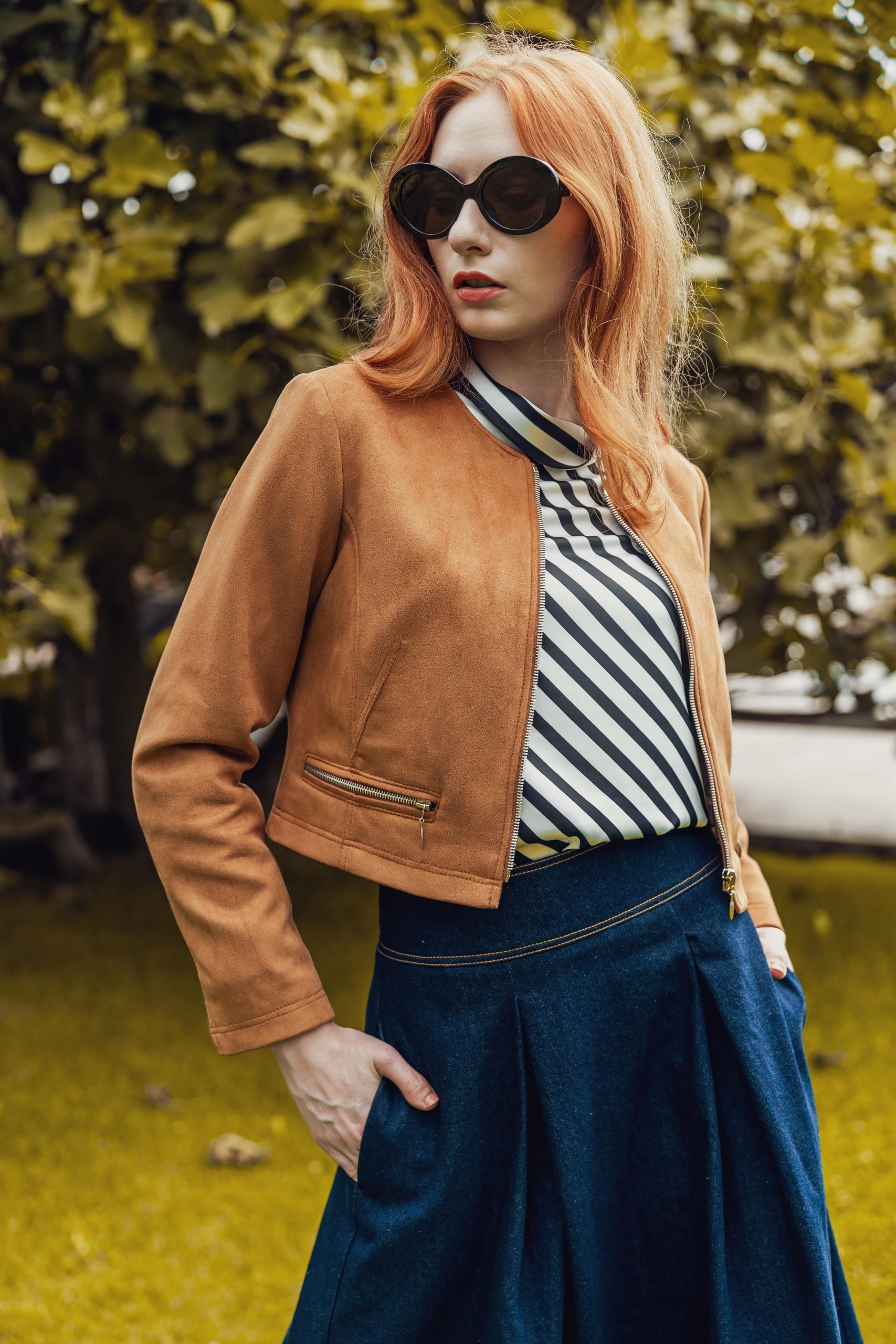 Long sleeved, collarless, round neck, zipped, short length, Nevada suede jacket.