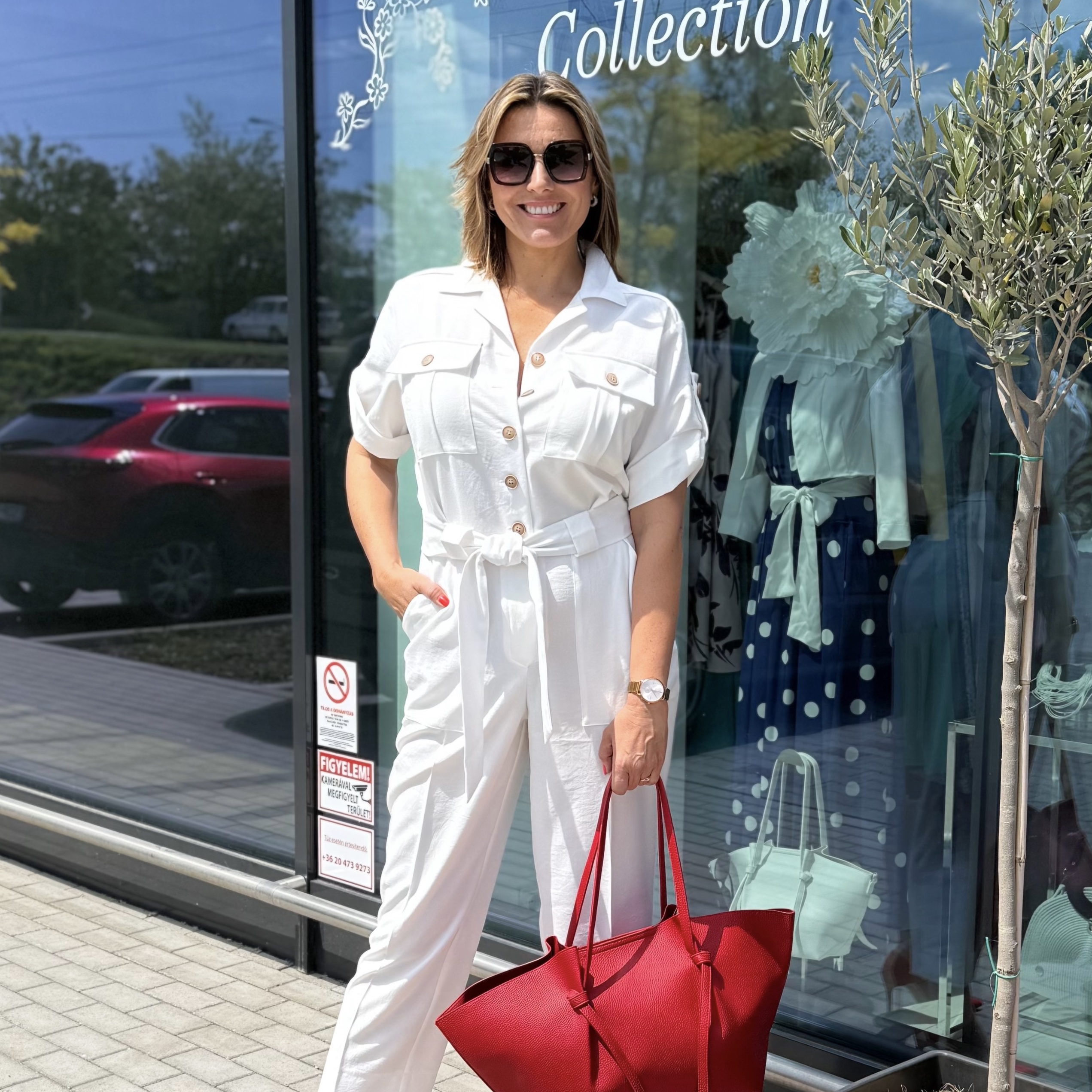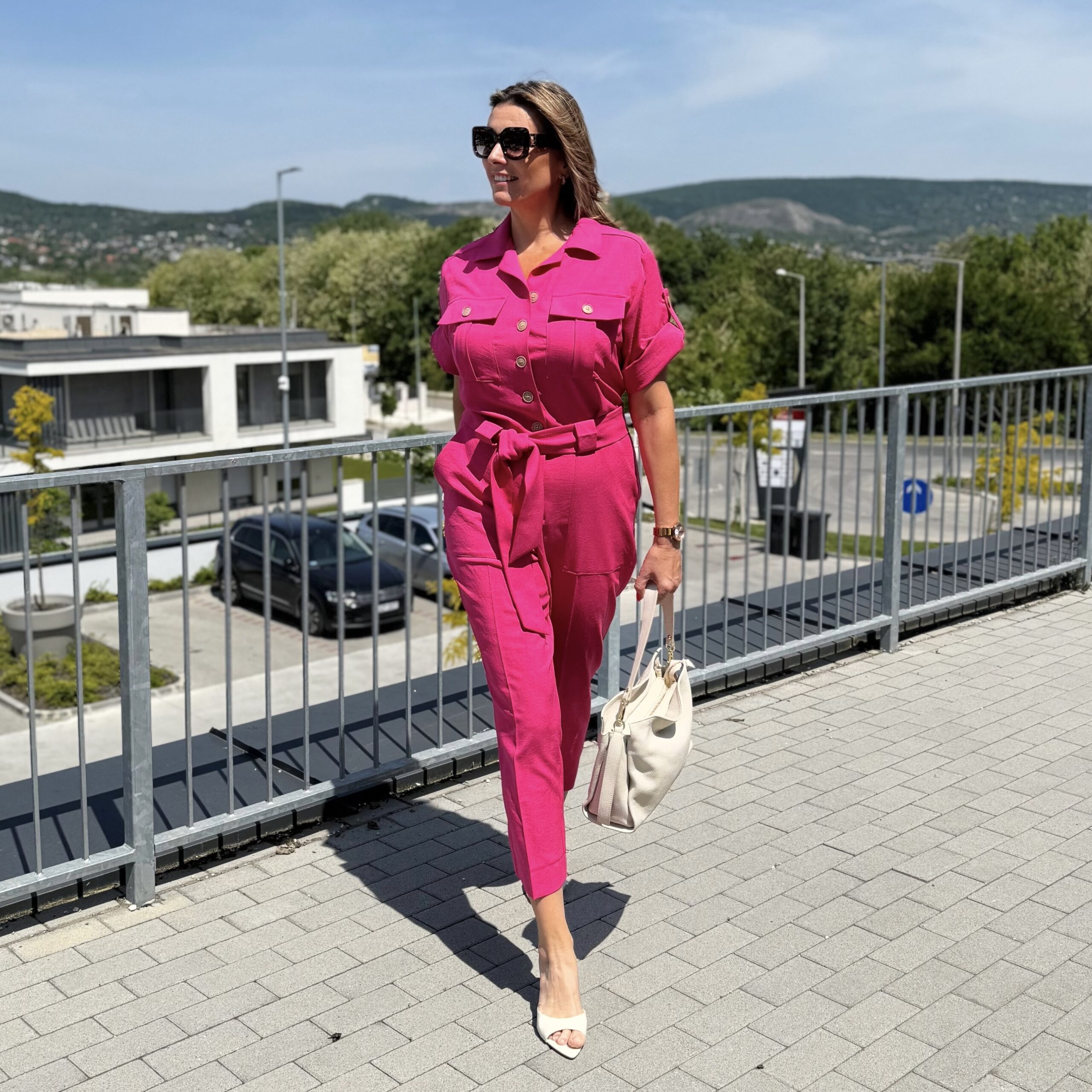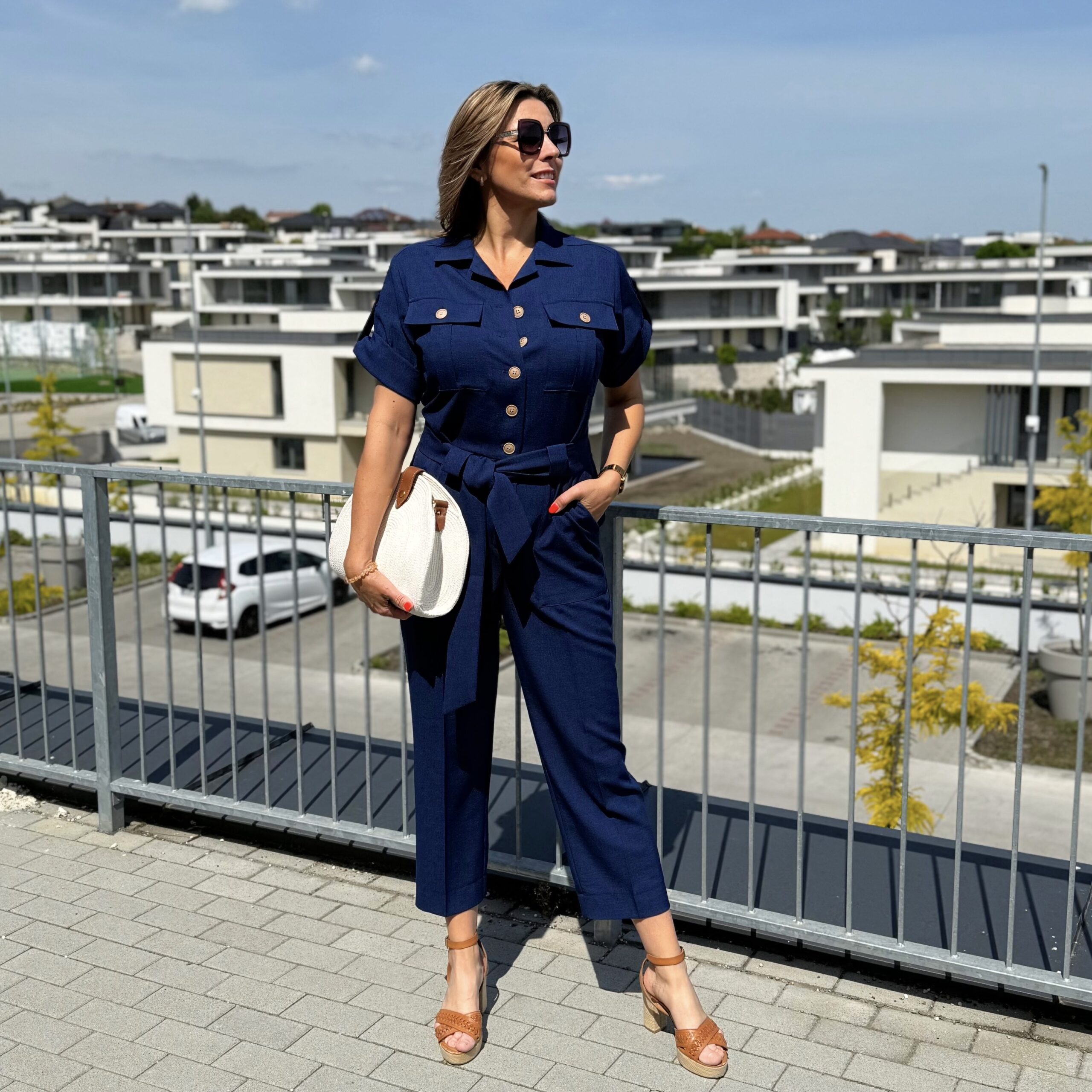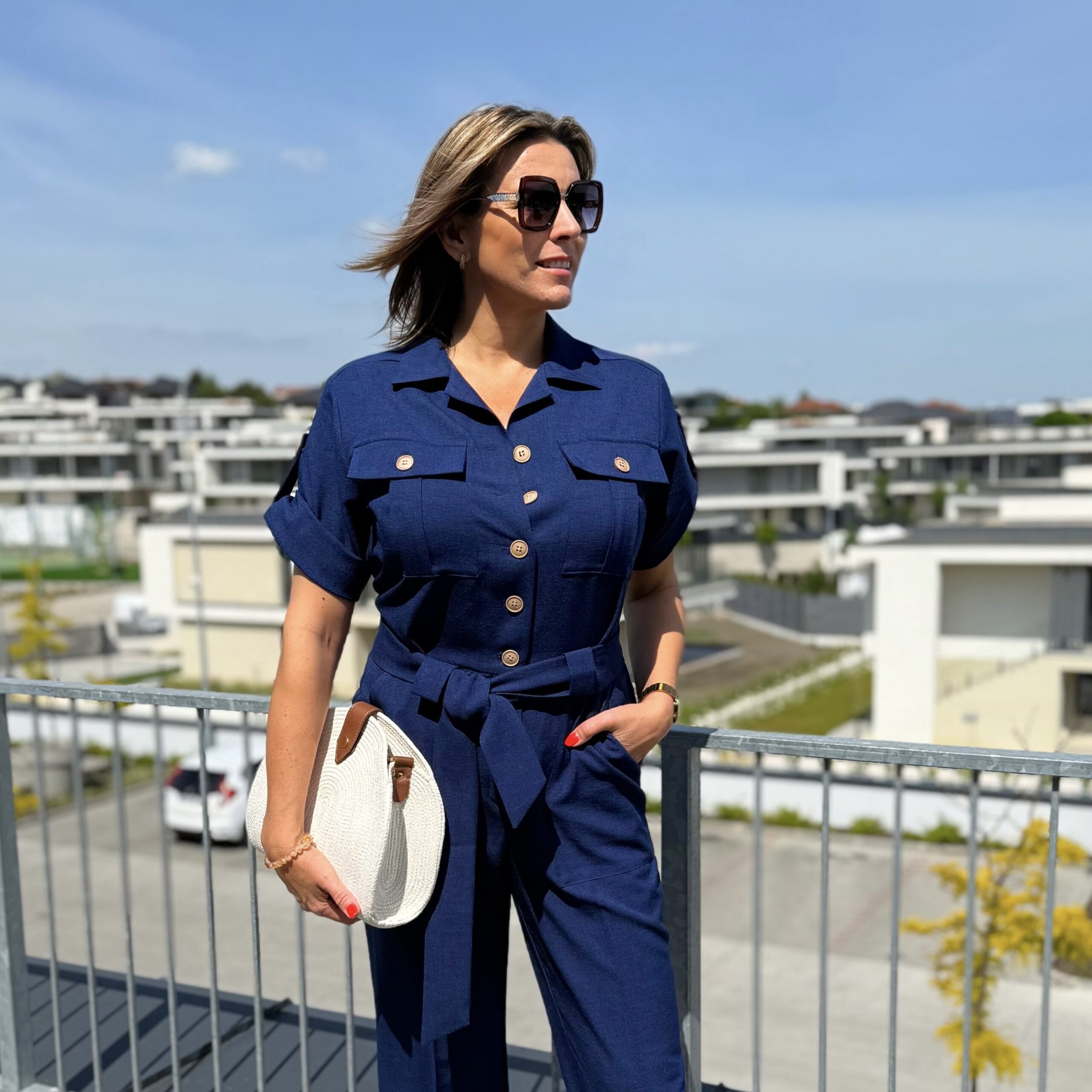 This linen effect jumpsuit is a stylish and modern choice for the summer season. The feminine cut highlights the waist with a tie belt, while the button fastening and decorative pockets are stylish yet practical details. The lightweight, breathable fabric ensures comfortable wear all day long, whether it’s an office look or a stroll around town. Pair with heels or sandals for the perfect summer set!